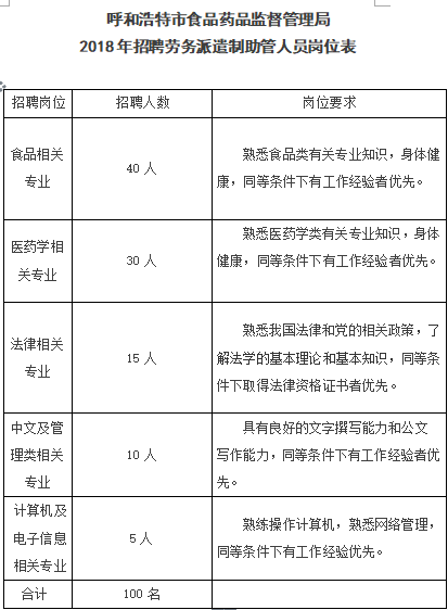 2018呼和浩特食品药品监督管理局招聘100名助管工作人员公告浏览数:1483次